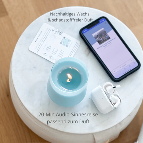 Erlebe eine multidimensionale Sinnesreise mit deiner luxuriösen, schadstofffreien Duftkerze und einer duftspezifischen Meditation. Wir entführen dich aus deinem Alltag und nehmen dich mit an wunderschöne, inspirierende Orte.